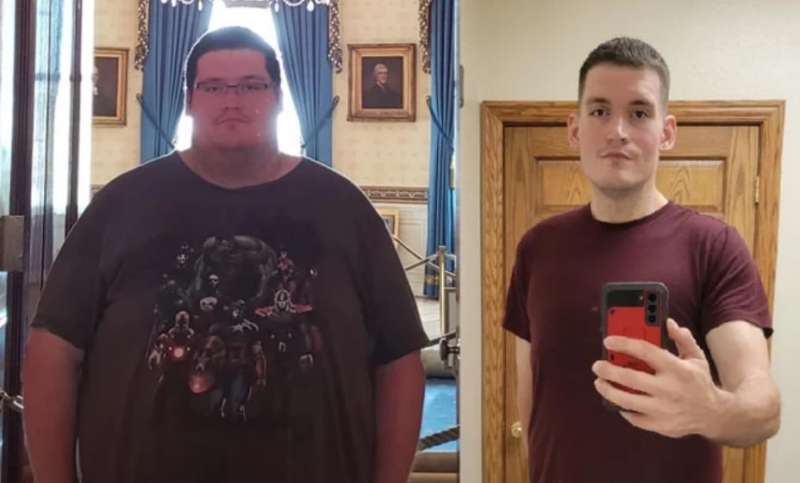 «На фото слева я вешу 110 кг и не могу влезть в свои брюки. На фото справа — 85 кг, и я, наконец, вспомнил, что значит носить вещи с комфортом»